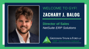 GYF is pleased to welcome Zachary J. Balog (Zach), a high-performing SaaS sales leader specializing in Cloud ERP, to the firm. Before joining GYF, Zach held progressively responsible roles in