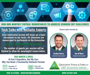 Jordan Curry and Emily Dawes of GYF’s ERP Solutions Group recently presented a webinar to the Pittsburgh NetSuite User Group