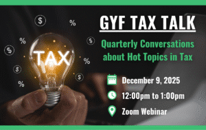 GYF tax professionals will discuss a few “hot topics” in these quarterly webinars. September conversation will focus on: OBBBA changes